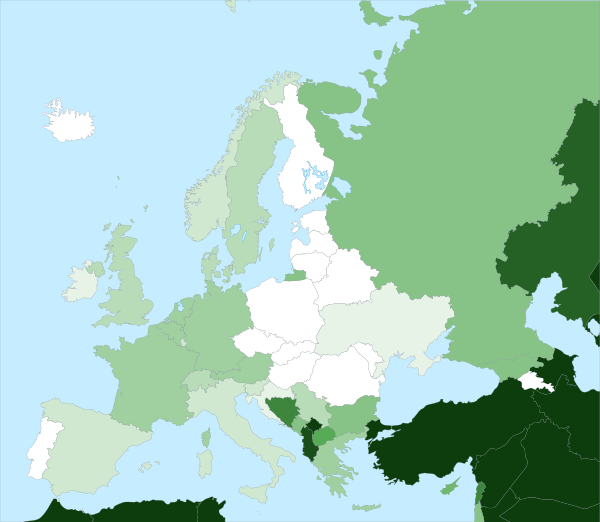 Начиная с арабского вторжения в Испанию в 711 году, в разных углах Европы образовывались мусульманские государства: Кордовский эмират, Сицилийский эмират, Золотая Орда и её осколки, Османская империя.