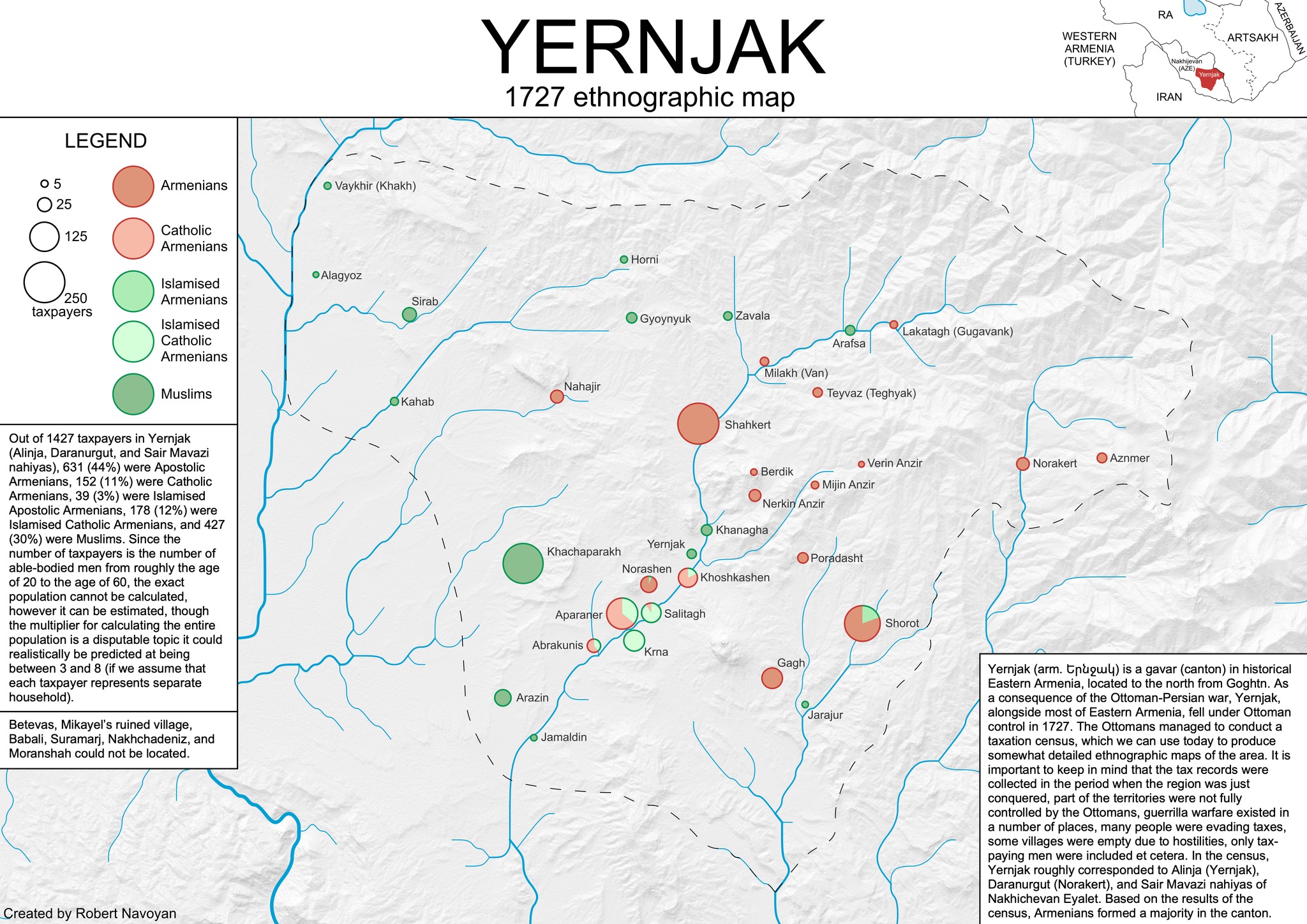 Инчичян также писал, что регион Кемах в Эрзинджане раньше был армянским и что его мусульманское население также имело армянское происхождение, принявшее ислам. Он же упоминает об армянских деревнях близ Эдессии (Шанлыурфы), поголовно исповедовавших ислам уже к началу 1700-ых годов. [33]