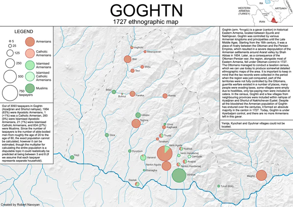 Калическая епархия Нахичевани сообщала, что в середине 1600-х годов 130 армянских семей из деревень Салтаг и Кирне приняли ислам, чтобы не потерять своё имущество. Епархия обращалась к Папе Римскому и королю Испании с просьбой заступиться перед иранским шахом, чтобы уменьшить гонения на армян. В 1700-х годах католические миссионеры предупреждали, что, если принудительные обращения не прекратятся, все армянское христианское население исчезнет из-за обращений и тюркизации, написав, что в деревне Ганза в провинции Ордубад осталась лишь горстка армян.[41]