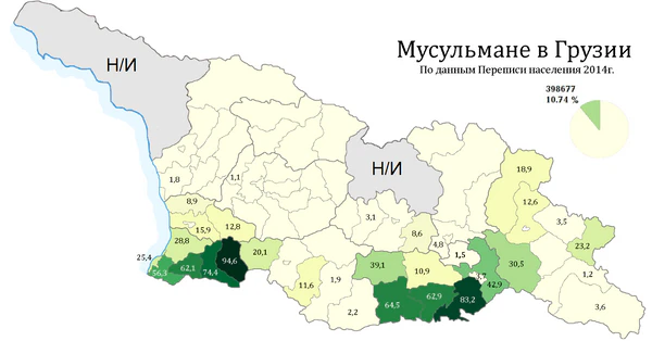| Основные общины | азербайджанцы, чеченцы, чеченцы-кистинцы, лезгины, турки-месхетинцы, часть аджарцев, абхазов и месхетинцев |