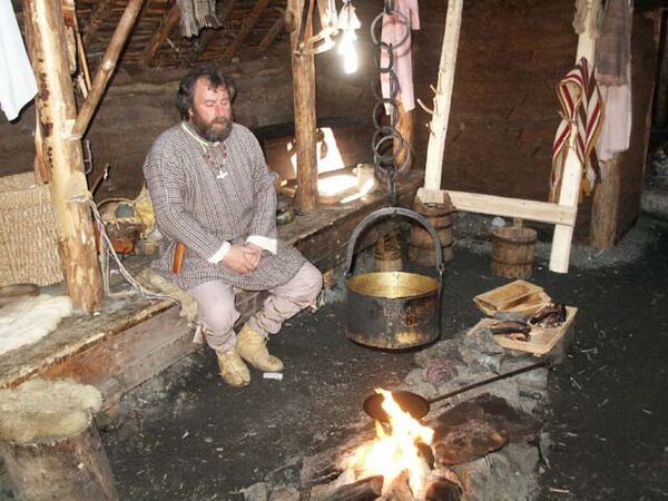 Длинные дома первых поселенцев обычно включали длинный костёр в центре дома для обогрева помещения. Вокруг него в полу были вырыты ямы, которые использовались в качестве земляных печей для выпечки хлеба и приготовления мяса. Женщины клали в яму тесто или мясо вместе с горячими углями от костра и плотно закрывали её на необходимое время. Они кипятили жидкости в деревянных чанах, помещая горячие камни из огня прямо в жидкость (практика, которая продолжалась до наших дней). Низкие каменные очаги окружали огонь, но в основном готовка велась на полу.