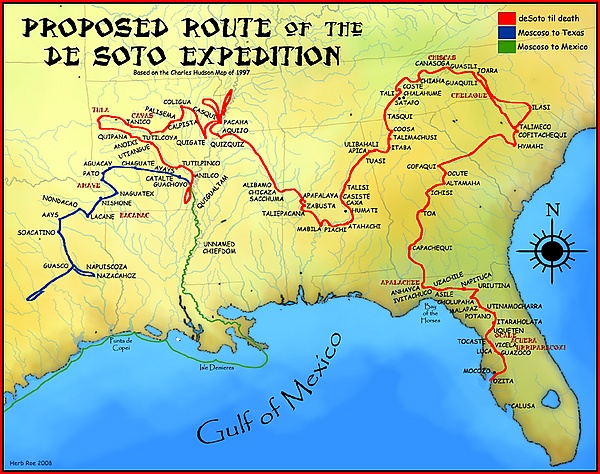 Эрнандо де Сото, участник похода Писарро против инков, в 1536 году вернулся в Испанию и через год был назначен губернатором Кубы. 30 мая 1539 года снаряжённая им большая экспедиция для «завоевания» Флориды высадилась на берег в заливе Тампа, где они обнаружили Хуана Ортиса, участника экспедиции Нарваэса, взятого в плен индейцами. Ортис сообщил де Сото о богатстве племени аппалачей, и де Сото с 550 солдатами и 200 лошадьми отправился на север, дальше от берега, чем шла ранее экспедиция Нарваэса. Экспедиция де Сото находила пропитание на своём пути. Индейцы, помнившие ещё о Нарваэсе, были сдержанны либо откровенно враждебны. Де Сото захватил несколько мужчин как проводников и женщин для развлечения солдат.