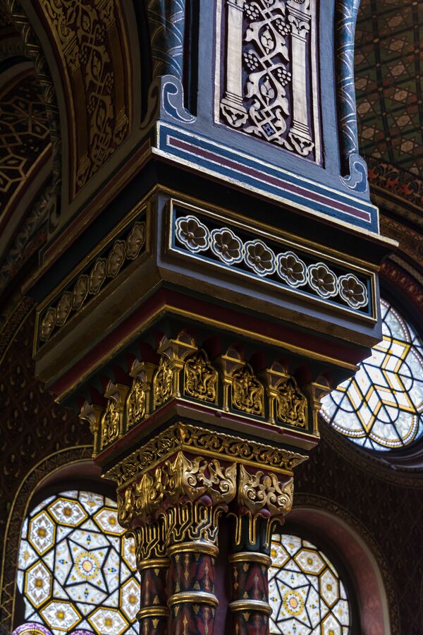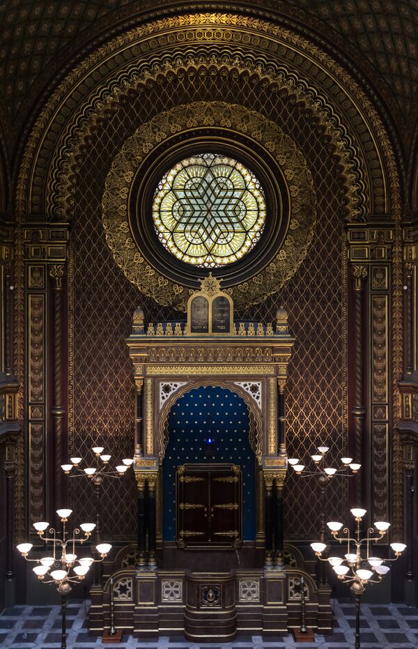 Синагога построена в 1868 году по проекту архитекторов Войтеха Игнаца Ульмана и Йосефа Никласа. Строительство синагоги пришлось на период масштабной реконструкции еврейского квартала. Синагога была выстроена на месте старейшей синагоги города Праги, т. н. «Альтшуль», которая перед этим была снесена. Здание получило мавританское убранство фасадов и чрезвычайно сложную отделку интерьера в том же стиле, создание которой заняло долгое время. В 1935 году к синагоге был пристроен дополнительный корпус.