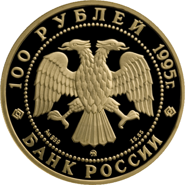 | В центре диска — эмблема Банка России (двуглавый орёл художника И. Билибина), в нижней части — обозначение металла, проба сплава, товарный знак монетного двора и содержание драгоценного металла в чистоте. По окружности надписи, обрамлённые кругом из точек: вверху — «3 РУБЛЯ 1995 г.», внизу — «БАНК РОССИИ». | Единый аверс 3 рублевых монет данной серии. | |