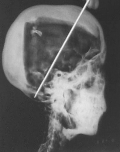 Рентгеновские снимки выявили два уровня смолы внутри черепа. Один из них появился, когда тело лежало на спине, и скопился на затылке; другой, когда голова была откинута сильно назад, оседал в верхней части черепа. В полости черепа также находились небольшие костные фрагменты, которые, как первоначально полагал Харрисон, были результатом процесса бальзамирования. Тот факт, что были обнаружены фрагменты черепа, заставил многих предположить, что царь был убит ударом по голове, но рентгеновский снимок не смог ни подтвердить, ни опровергнуть эту теорию. Его возраст на момент смерти снова был оценён примерно в 18 лет, а предполагаемый рост при жизни — 168,9 см[47]. Серологический анализ, проведённый той же командой, показал, что у Тутанхамона и мумии KV55 была одна и та же группа крови, что свидетельствовало о возможном родстве[50].