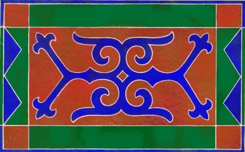 На войлочную заготовку накладывали выкройку рисунка, влажной тряпкой выравнивали и увлажняли края, затем обсыпали выкройку кукурузной мукой. Число повторов операции определялось числом используемых цветов. Затем вырезали аппликации и закрепляли на основе с обеих сторон. Каждый элемент выделялся чётким контуром и вписывался в общую вязь[3].