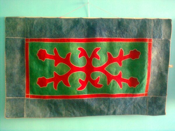 Из войлочных изделий особого внимания заслуживают разноцветные сшивные ковры-арлекины. Каждая невеста, например, должна сделать для себя в приданое 2-3 арлекина и от 10 до 20 намазлыков[2]