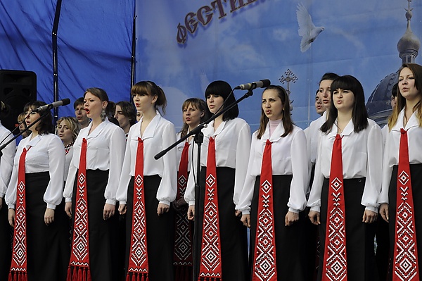 Пение одноголосное; нотация состояла из безлинейных знаков, называвшихся знаменами, а позднее крюками (см. Знаменное пение). Музыкальные знаки не вполне точно определяли высоту и длительность нот. Нотная запись служила скорее средством для напоминания певцу уже знакомой ему мелодии, знание которой приобреталось более понаслышке. Текст был славянский, а иногда греческий. В славянском полугласные буквы пелись как слоги, что видно из нотных знаков, поставленных над ними[4][5].
