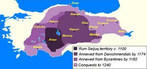 Со второй половины XI века территория Армении подверглась нашествию турок-сельджуков, армянское население начало покидать родные земли и эмигрировать в Грузию, на Северный Кавказ[21] и особенно в Киликию[22]. В 1071 году, после битвы под Манцикертом, сельджуками было создано первое государство — Султанат Рум, в который вошла вся Армения и внутренняя часть Анатолии. Это привело к усилению миграции армян в прибрежные области, особенно в Киликию и Ефратес[23]. В 1072 году курдская династия Шеддадидов получила от сельджуков в вассальное владение бывшее Анийское царство, образовав Анийский эмират. Таким образом с XI века на Армянском нагорье и в Закавказье начался многовековой процесс вытеснения армянского и курдского населения пришлым тюркским[24]. В закавказской Армении нападения сельджуков удалось избежать лишь Сюнику (Зангезуру) и Таширу[18].