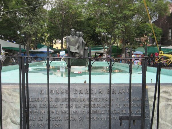 После испанского завоевания это устройство города осталось преимущественно нетронутым, во многом благодаря усилиям Алонсо Гарсия Браво, который контролировал большую часть работ по перестраиванию города. В ходе этой реконструкции были сохранены многие из главных дорог Теночтитлана, таких как Тенаюка, переименованная в Вальехо; Тлакопан — в Мехико Такуба, а также Тепеяк, ныне известный как Кальсада-де-лос-Мистериос. Также остались основные районы города, к их названиям были добавлены христианские префиксы: Сан-Хуан-Мойотла, Санта-Мария-Тлакечиуакан, Сан-Себастьян-Ацакуалько и Сан-Педро-Теопан. Фактически, большая часть исторического центра Мехико возведена из руин разрушенного города ацтеков[4]. так, Резиденция архиепископа была возведена на основании разрушенного храма Тескатлипоки.