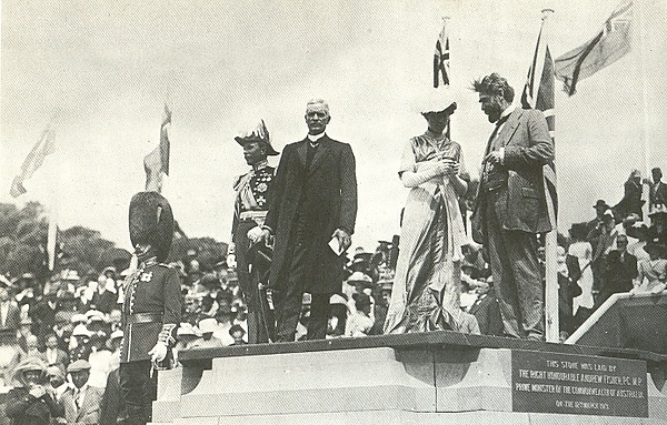 Тем не менее, ясный ответ на вопрос о том, где будет расположена столица дан не был. Первоначально был предложен город Бомбала, расположенный далеко на юге от Нового Южного Уэльса, к которому позднее были добавлены Монаро (с которым он объединялся с Бомбалой), Орендж и Ясс. Джон Си, премьер Нового Южного Уэльса предложил на выбор три из рекомендованных городов в качестве будущей столицы[61]. Эдмунд Бартон, первый премьер-министр нового Федерального правительства, добавил ещё несколько: Олбери, Тэмворс, Армидейл и Тумут, после чего члены нового правительства посетили предложенные города в 1902 г[62]. Посещение не принесло никаких результатов, и по их возвращению было решено передать этот вопрос Королевской Комиссии и министру внутренних дел Вильяму Лину, в котором предлагалось остановить свой выбор на Тумуте или Олбери — местах, которые он предлагал[60]. Впоследствии комиссией парламенту в 1903 году был представлен доклад, который в определённом порядке (Олбери, Тумут и Орендж) рекомендовал указанные города. Однако проблема оставалась из-за того, что Палата представителей поддержала Тумут, в то время как Сенату был предпочтительнее Бомбала[58][62][63]. В результате принятие законопроекта было просрочено, после чего место для столицы должно было устанавливаться следующим парламентом[62].