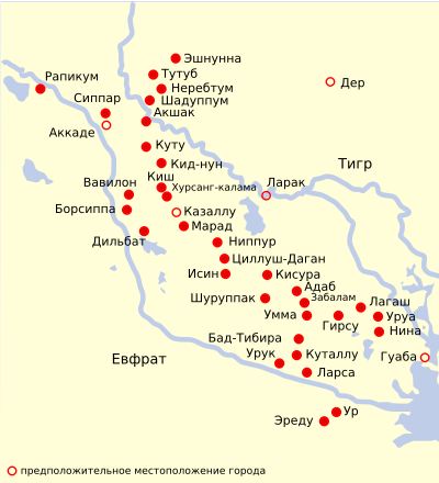 Шумер, расположенный на юге Месопотамии, является древнейшей в мире цивилизацией, которая существовала с возникновения первого поселения в Эриду во время убайдского периода (конец 6 тыс. до н. э.), продолжала существовать во время урукского (4-е тыс. до н. э.) и династического периода (3-е тыс. до н. э.) и пришла в упадок во времена расцвета Ассирии и Вавилона в конце 3 — начале 2 тыс. до н. э. Аккадская империя, которую основал Саргон Великий, существовала с 24-го по 21-й века до н. э., и считается первой в мире империей. Аккадские территории со временем распались на ассирийское и вавилонское царства.