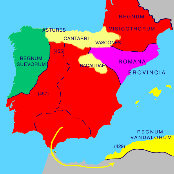 В 411 году, договорившись между собой варварские племена свевов, вандалов и алан разделили Пиренейский полуостров. Вандалы-силинги (управляемые Фридубальдом), более могущественные, чем их родственники вандалы-асдинги, получили плодородную провинцию Бетику (будущую Андалусию), которая в будущем получит их имя.