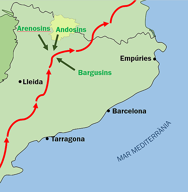 В 218 году до н. э., чтобы избежать зон влияния греческой колонии Эмпорион, союзника римлян, главнокомандующий карфагенскими войсками Ганнибал использовал долину Сегре, чтобы пересечь Пиренеи на пути в Римскую республику. В том же году генерал Корнелий Сципион во главе римской армии высадился в Эмпорионе с целью перекрыть снабжение армии Ганнибала и контролировать Пиренейские проходы[1][7].