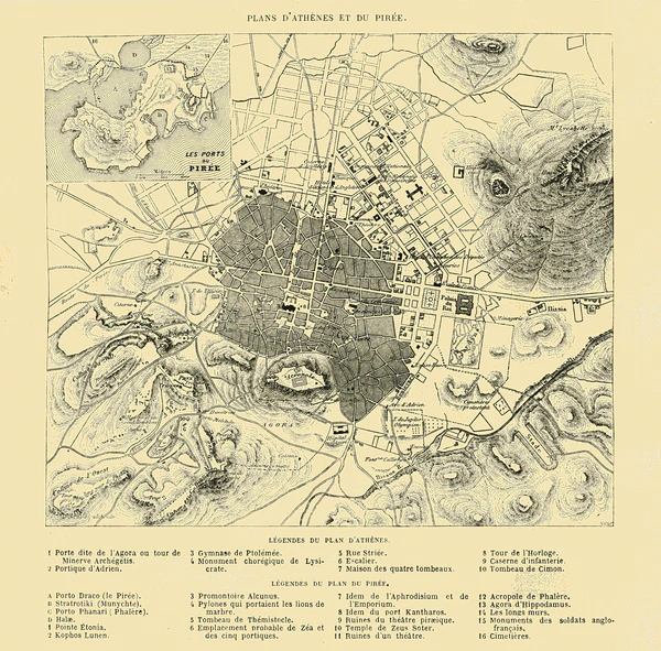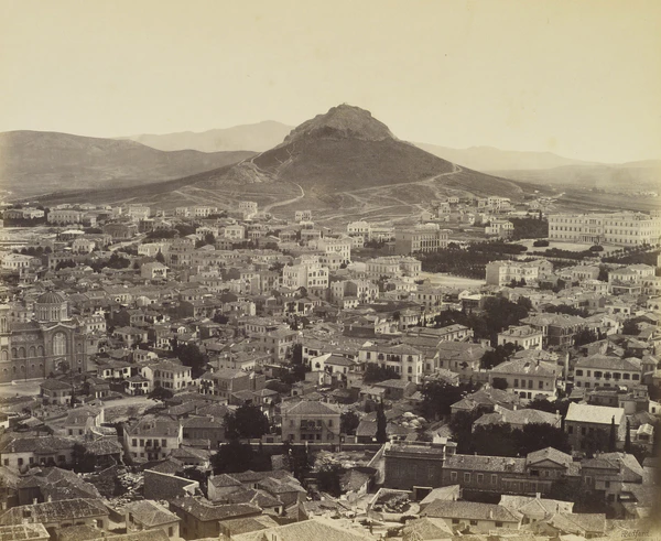 В 1832 году Оттон, принц Баварии, был провозглашён королём Греции. Он перенял греческую национальную одежду и сделал одной из своих первых задач в качестве короля проведение детального археологического и топографического обследования Афин, своей новой столицы. Он поручил Густаву Эдуарду Шауберту и Стаматису Клеантису выполнить эту задачу[33]. В то время население Афин составляло всего лишь от 4000 до 5000 человек живших в домах разбросанных у подножия Акрополя, расположенных в том месте, где сегодня находится район Плака.