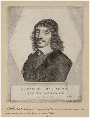 - ↑ Hutton, James. The Greek anthology in France and in the Latin writers of the Netherlands to the year 1800 Volume 28 (англ.). — Cornell University Press, 1946. — P. 188.. — «LEONARD PHILARAS or VILLERET (c. 1595—1673) Philaras was born in Athens of good family and spent his childhood there. His youth was passed in Rome, where he was educated, and his manhood».