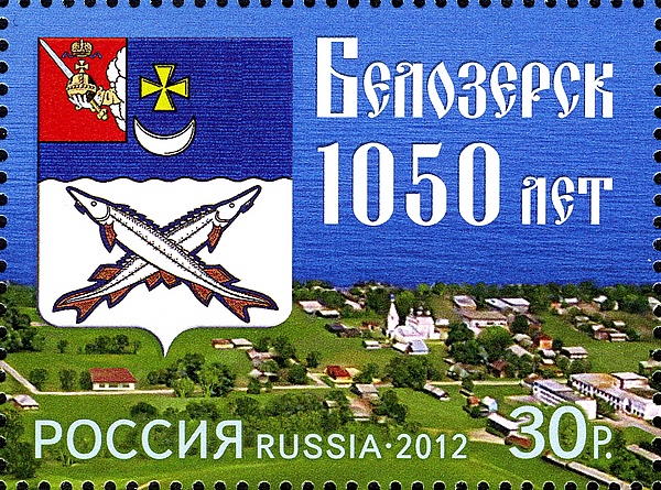 12 октября 2001 года утверждены герб и флаг Белозерского муниципального района и города Белозерска. Герб Белозерска представляет собой: «В волнисто-пересечённом лазурью и серебром щите вверху уширенный крест над серебряным полумесяцем, внизу две накрест положенные серебряные стерляди с червлёными плавниками, тонко окаймлённые лазурью. В вольной части герб Вологодской области». Автор реконструкции герба: Олег Свириденко. Герб внесён в Государственный Геральдический регистр Российской Федерации под № 1222.
