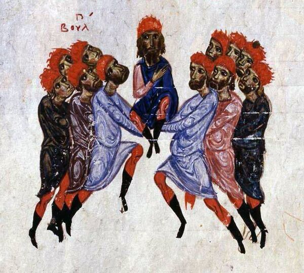 Сын Симеона Пётр в Константинополе заключил мир с Византией на 30 лет, породнившись с императором Романом I. Византия признала за Петром титул «василевса болгар». Болгарская церковь стала возглавляться патриархом, резиденция которого, по условиям Византии, должна была разместиться в Дристе. Византия согласилась продолжить выплату Болгарии ежегодной дани. После появления в Константинополе в 928 году «запасного» кандидата на болгарский престол, Византия начала политику удушения соседнего государства для восстановления собственной власти над Балканами. В это время бежавший из Болгарии сербский князь Часлав провозгласил независимость Сербии от Болгарии. В 934 году венгры прошли через болгарские земли до стен Константинополя. Нападения венгров на Болгарию происходили до конца 960-х годов. В 944 году Болгария подверглась разорению со стороны печенегов, пришедших на Дунай во время русского похода на Царьград[44]. Приблизительно в середине X века в стране распространилась ересь богомилов, основанная болгарским «попом Богомилом». Особенно богомилы ненавидели государство и официальную церковь, которые, как они считали, были созданы «князем тьмы»[45].