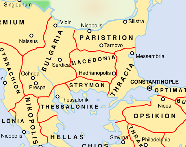 После наступления византийцев в 972 году Болгария начала терять свои территории[47]. После захвата разрушенного и сожжённого Преслава император Иоанн Цимисхий переименовал болгарскую столицу в Иоаннополь, Борис II был увезён в Константинополь и публично лишён регалий. В 976 году борьбу против Византии возглавили братья-«комитопулы» с ветхозаветными именами[48], управлявшие западными комитатами Болгарии. Изгнав завоевателей из Северо-Восточной Болгарии, они восстановили болгарское государство со столицей в Охриде.