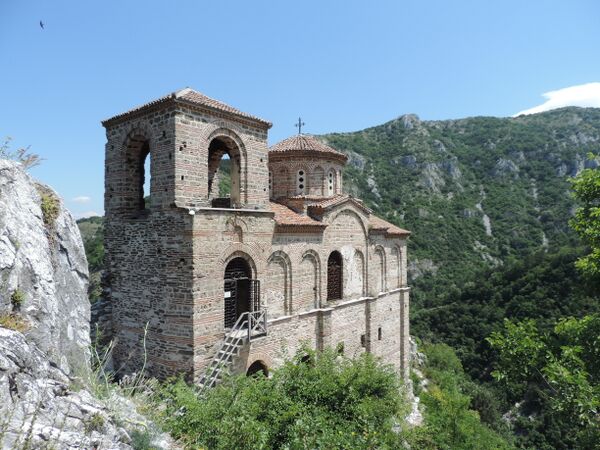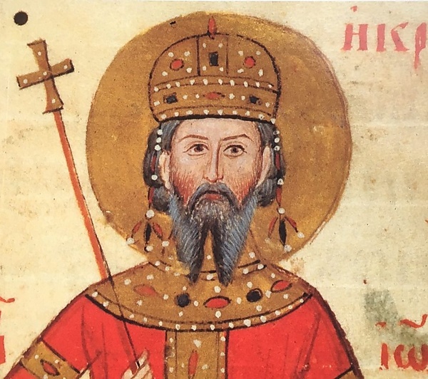 В 1190-е годы Асень занял Средец, земли в верхнем и среднем течении реки Струмы, Видин, Ниш, Белград. В результате внутриполитической борьбы Асень, а затем и его брат Пётр были убиты. Новым царём стал их младший брат Иван, вошедший в историю под грецизированным именем Калоян. В 1199 году совместно с половцами Калоян начал войну против Византии. В 1204 году Калоян, заключив унию с католической церковью, получил от папы титул короля, не отказавшись при этом от титула царя. Это позволило Калояну удержать Белград, Браничев и Ниш от захвата венграми. Болгарская церковь сохранила восточный обряд и богослужение на славянском языке. В том же году Византия пала под натиском крестоносцев. Завоеватели заявили о «незаконности» прав Калояна на Болгарию как земли бывшей Византии. В 1205 году между болгаро-половецким войском и крестоносцами произошла битва под Адрианополем, закончившаяся поражением последних. Калоян был предан папой анафеме. В 1207 году он был убит. При Иване Асене II (правл. 1218—1241) Болгарское царство временно превратилось в гегемона на Балканах. Он расширил территорию Болгарии, почти бескровно подчинив себе Западную Фракию, Македонию, Западный Эпир и Северную Фессалию. С соседней Сербией Асень сохранял дружеские отношения. На одной из колонн в тырновской церкви Сорока мучеников царь приказал выбить слова: «В лето 6738 (1230)… я, Иван Асень, во Христе боге верный царь и самодержец болгар… в двенадцатый год своего царствования разбил греческие войска, а самого царя, господина Феодора Комнина, взял в плен со всеми его болярами. И взял всю его землю…»[57].