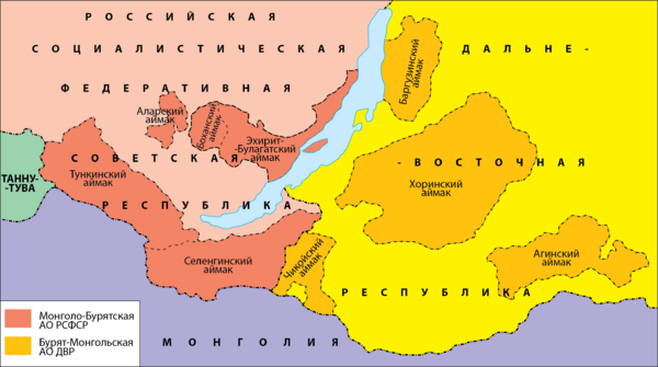 В 1921 году в составе ДВР была создана Бурят-Монгольская автономная область (Агинский, Баргузинский, Хоринский и Читинский аймаки; центр округа — Чита).