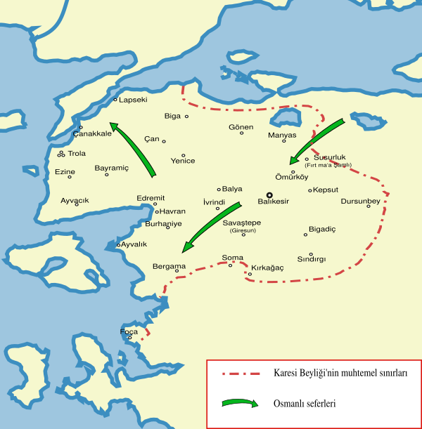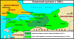 Сведения о переселении малоазийских турок во Фракию появились уже в 1261 году[29]. К 1348 году бродячие группы мародёрствующих турок уже вступали в стычки с византийской армией вплоть до Салоник, когда группа из 2000 кочевников напала на свадебный кортеж императора Иоанна VI Кантакузина на пути из Константинополя в Дидимотихон[30]. Таким образом, почву для прямого османского вторжения уже самолично подготовили местные беи.