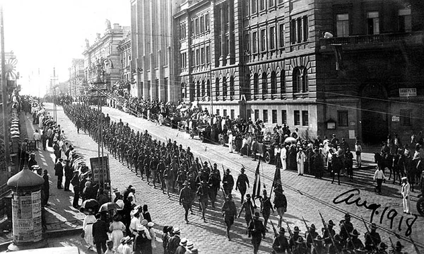 Однако 3 декабря 1917 года прошла конференция бывших союзников России по Антанте, на которой было принято решение о разграничении зон интересов на территориях бывшей Российской империи и установлении контактов с национально-демократическими правительствами. 29 июня 1918 г. чехословацкие войска свергли советскую власть в городе, в город вошли войска США, Японии, Италии и Канады[19]. В 1919 году край был охвачен партизанской войной[19].