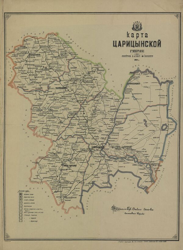 «Город Царицын стоит при конце линии (сторожевой). На самом волжском берегу, обведён земляным валом, с раскатами с трёх сторон, а четвёртую сторону защищает его река Волга. Строение в нём все деревянное, включая 3 каменные церкви: Купечество в нём зажиточное, и большой его доход состоит в рыбных промыслах. Бедные жители питаются от посева дынь и арбузов, которые вкусом и астраханские превосходят: Другую отрасль бедным царицынским жителям предлагают дикие яблоки, а особливо терновник. Виноградные сады в Царицыне не с худым успехом разводятся: В числе первейших полезных заведений в соседстве с Царицыном должно почитать шёлковую казённую фабрику. Она заведена в верстах семи от ахтубинского верхнего устья и имеет все желаемые выгоды. К ней приписаны две слободы, которые поблизу и поселены».