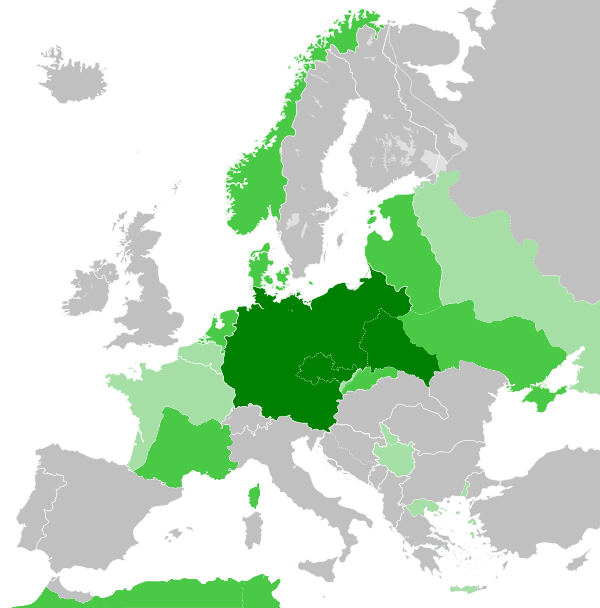 Император Карл V был противником Реформации. Однако многие княжества и города выступили против него и начали войну против своего императора. В конце концов, в 1555 году был заключён Аугсбургский религиозный мир, по которому в империи была провозглашена свобода вероисповедания.
