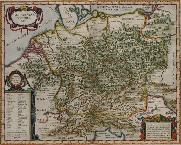 Германцы делились на несколько групп — между Рейном, Майном и Везером жили батавы, бруктеры, хамавы, хатты и убии; на побережье Северного моря — хавки, англы, варины, фризы; от средней и верхней Эльбы до Одера — маркоманы, квады, лангобарды и семноны; между Одером и Вислой — вандалы, бургунды и готы; в Скандинавии — свионы, гауты.