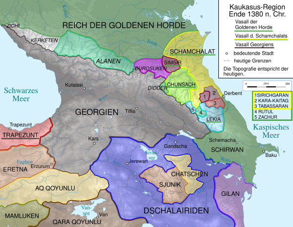 В 1318 году Дагестан, как и большая часть Кавказа, находился в арене ожесточённых распрей между персо-монгольским государством хулагуидов и татаро-монгольской Золотой Ордой. «Гази-Кумук» был союзником Золотой Орды[61].