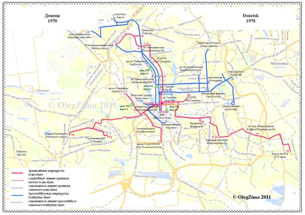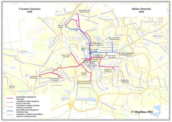 В 1955 году с центром Петровский район и посёлки Лидиевка, Абакумово связывали автобусные маршруты № 4 (Садовая площадь — Петровский райсовет) и № 9 (Садовая площадь — шахта имени Абакумова). В 1960-х годах произошёл слом трамвайного пути по улице Артёма, перенос её на Челюскинцев и запуск по Артёма второго троллейбусного маршрута («ДМЗ-Вокзал»).