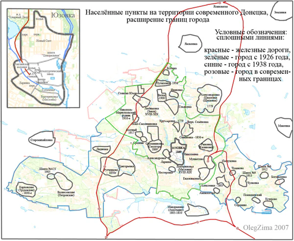 Со временем на территории современного Донецка были созданы следующие поселения[6]: