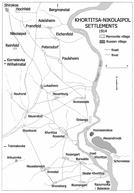 - три немецкие менонитские колонии у Кичкасской переправы (с 1790 года):