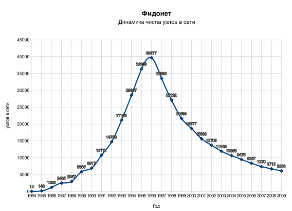 Фидонет — ведущая историю с 1984 года компьютерная сеть частных лиц на базе модемов и телефонных сетей общего пользования, построенная в домашних условиях и получившая глобальный охват, оказав большое влияние на формирование интернет-культуры. Первоначально построена на программной платформе BBS, со временем обрела шлюзы в Интернет. В 21 веке до сих пор поддерживаются отдельные сегменты[47].