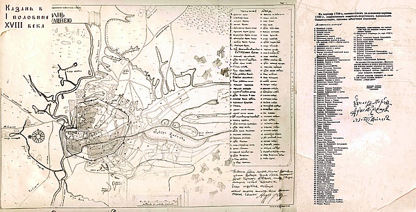 В 1708 году Казань стала столицей обширной Казанской губернии. В период правления Петра I город становится одним из важнейших промышленных и административных центров страны: были построены кожевенный завод, Казанская суконная мануфактура, в 1718 году основано Казанское адмиралтейство, выпускающее суда различного типа. В 1722 году в городе побывал Пётр I. С 60-х годов XVIII века застройка города начала принимать упорядоченный характер, появились деревянные мостовые, мосты через Булак и Казанку. Всего в Казани к концу XVIII века проживало около 22 тысяч человек, а с пригородными слободами — более 40 тысяч, и из них только около десяти процентов — татары[15].