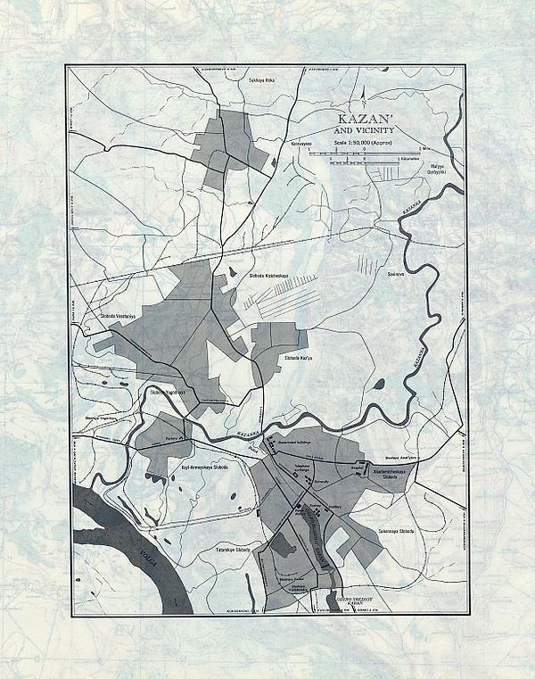 После завоевания города Иваном Грозным в 1552 году началось строительство нового, белокаменного Кремля. В посаде стали жить ремесленники, торговцы, переводившиеся по указанию Ивана Грозного иногда целыми слободами из разных русских городов, простой люд, неугодные Грозному бояре[14]. При этом лояльные казанцы были переселены за посадскую стену в район за каналом-протоком Булак и озера Нижний Кабан, где к XVII—XVIII вв. сформировался уникальный ансамбль национальной татарской архитектуры — Старо-Татарская слобода.
