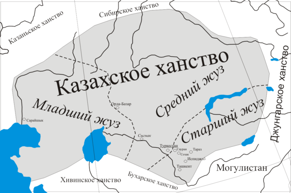 В 1458 году, недовольные жёсткой политикой хана Узбекского улуса Абу-л-хайра султаны Жанибек и Керей со своими аулами откочевали с берегов Сырдарьи на восток в Семиречье, на земли правителя Могулистана Есен-буги, где в 1465 году образовали Казахское ханство. Народ, ушедший с ними, стал называть себя свободным людом — казахами.