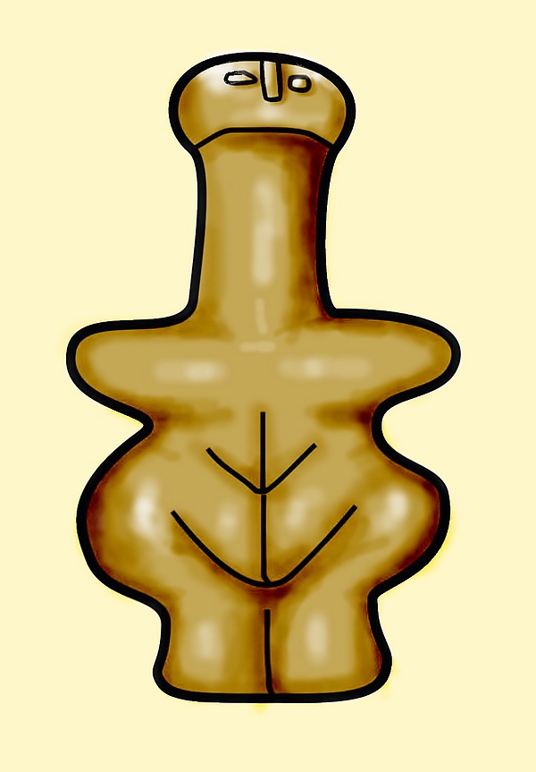 Для эпохи энеолита характерны статуэтки с распростёртыми руками (Помосский идол).