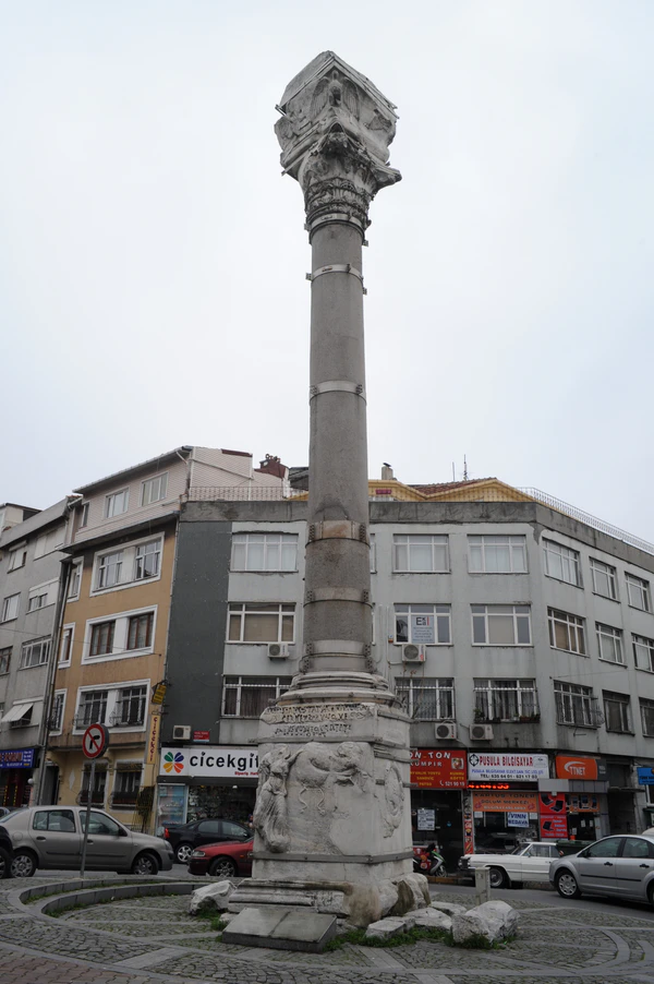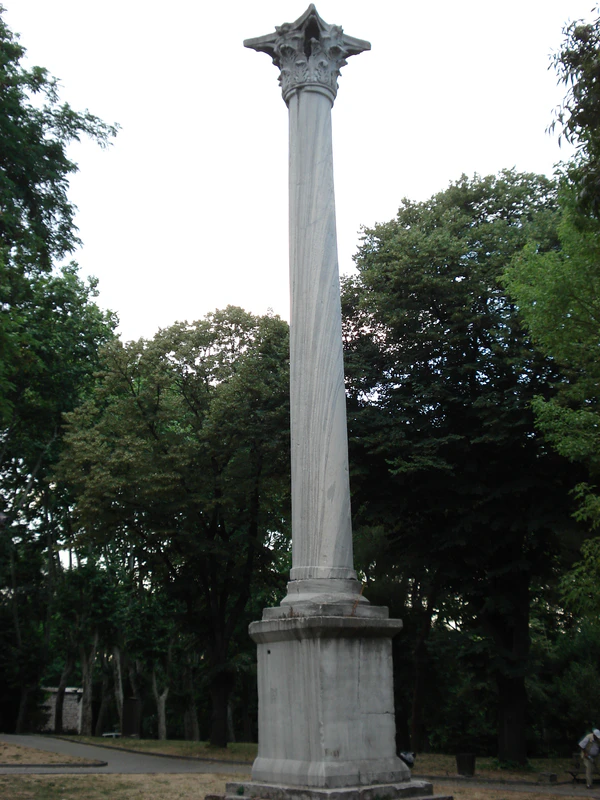 При императоре Константине были заложены церковь Святой Софии, церковь Святой Ирины, церковь Святого Акакия у Золотого Рога и церковь Святого Мокия за пределами городской стены. Наряду с первыми церквями в Константинополе был построен внушительный храм Фортуны, обновлены несколько святилищ, возведена привезённая из римского храма Аполлона громадная колонна, на месте увенчанная статуей самого Константина в образе Аполлона (или Гелиоса), который приветствует восходящее солнце[комм. 7]. Из Дельф была доставлена бронзовая «змеиная колонна», служившая подножием знаменитого золотого треножника, а в Константинополе украсившая арену ипподрома[комм. 8]. Из Рима был привезён знаменитый памятник в честь богини Афины Паллады, в своё время вывезенный римлянами из Афин (его колонна была превращена в пьедестал для статуй, изображавших Константина, а затем и его преемников). В городе, которому император даровал муниципальное устройство Рима, был учреждён сенат, отныне здесь находился один из консулов. В Константинополь был перенаправлен внушительный поток египетского зерна, ранее шедший на нужды населения Рима[5][7][8].
