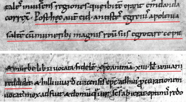 Самые древние признаки заселения городской зоны Лейпцига относятся к периоду неолита. Согласно археологическим данным[3] Лейпциг был основан около 900 года как славянское (сербо-лужицкое) поселение, располагавшееся по обоим берегам реки Парте. В начале X века Лейпцигская низменность была завоёвана франками, и на севере будущего города было выстроено небольшое укрепление, законченное, вероятно, около 930 года. Первое письменное упоминание о нём под именем лат. urbs Libzi встречается в хронике Титмара Мерзебургского, и датируется 1015 годом (Chronikon VII, 25): согласно этой записи здесь скончался епископ Майсена Эйдо I (нем. Eido I, 955—1015) на пути из Польши.
