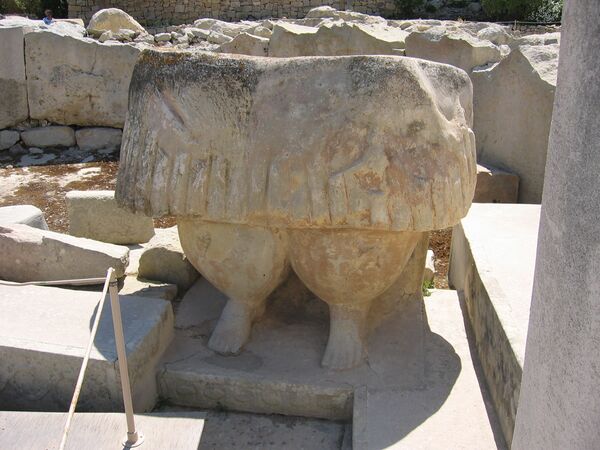 Вторая волна колонизации пришла из Сицилии примерно в 3850 году до нашей эры. Около 3600 года до н. э. начался наиболее заметный период предыстории Мальты - период храмов. Храм Джгантия на о-ве Гозо - одно из старейших отдельно стоящих зданий в мире. Название - от мальтийского слова ġgant (гигант), отражающего размер храма. Многие из храмов состоят из пяти полукруглых комнат, соединенных в центре. Было высказано предположение, что они могли представлять голову, руки и ноги божества, поскольку один из самых распространенных видов статуй, найденных в этих храмах, — тучная женщина — символ плодородия. Цивилизация, строившая храмы, просуществовала около 1500 лет, — до 2350 года до нашей эры. После чего, похоже, исчезла. Имеется несколько предположений о причинах: уничтожение, ассимиляция, но наиболее признаваемый вариант - климатические условия и засуха[2].