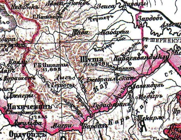 - Пианк (напротив Тигранакерта и нынешнего Агдама),