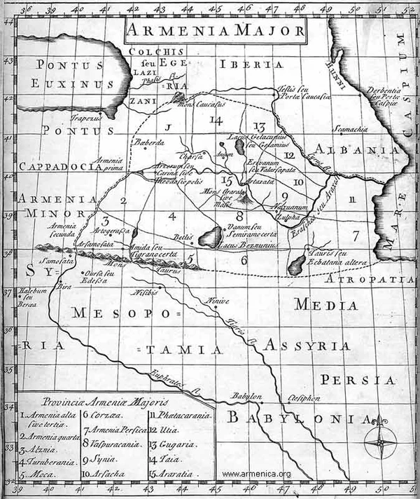 О границах Ервандидской Армении (IV—III века до. н. э.) существуют разные точки зрения. Ряд западных авторов ограничивает восточные пределы Армении до II в. до н. э. долиной Аракса и озером Севан[26][27][28]. Русский востоковед В. Ф. Минорский характеризовал территории к югу от Куры как занятые племенами кавказско-албанского происхождения, но захваченные армянами и арменизированные; эти территории вернулись под власть албанских правителей лишь после раздела Армении между Византией и Персией в 387 году[29].