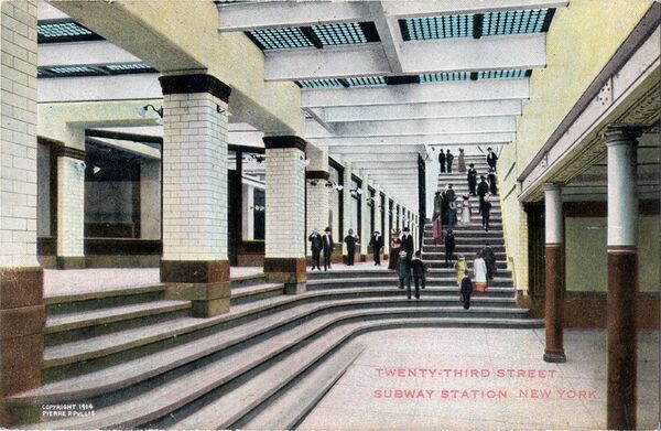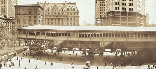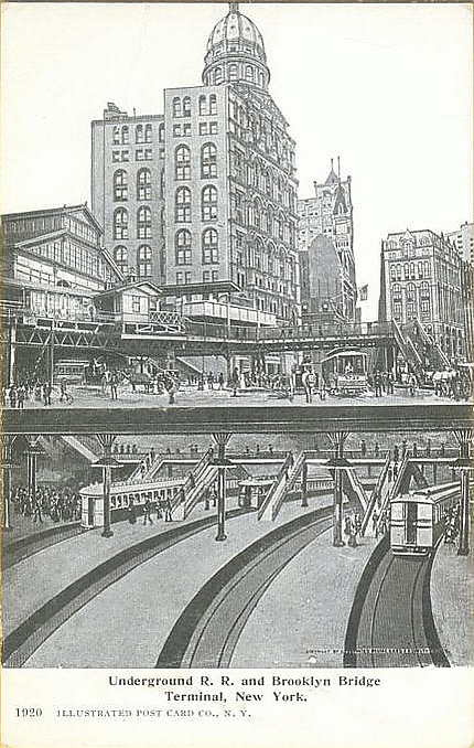 После изобретения электрического локомотива началось строительство подземных линий, а также электрификация существующих наземных и эстакадных. Первая в Нью-Йорке подземная линия[en] была построена на Манхэттене в 1904 году, состояла из 28 станций и управлялась компанией Ай-ар-ти. Позже эта линия была разделена на 3 разных, а 4 из её станций закрыты, среди них уникальная станция «Сити-холл»[М 3].