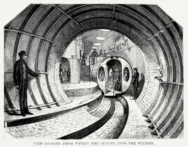 До метро в Нью-Йорке существовал 95-метровый тоннель — так называемая пневматическая железная дорога, подвижной состав которой приводился в движение энергией сжатого воздуха[1].