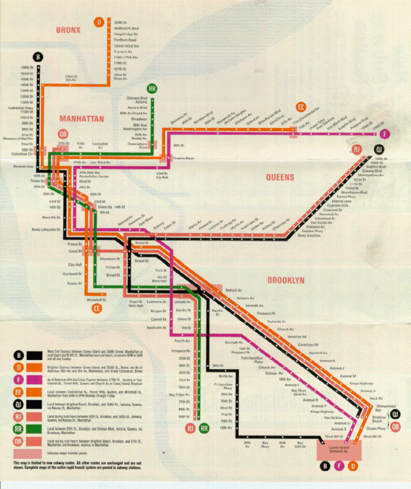 В 1967—68 годах было произведено несколько кардинальных изменений на линии Шестой авеню (Манхэттен, сеть Ай-эн-ди), позволивших увеличить её пропускную способность, а главное — окончательно превратить бывшие сети Ай-эн-ди и Би-эм-ти в единую сеть.