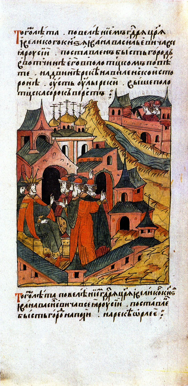 Того же лета повелением государя царя и великого князя Иоанна Васильевича всея Руси поставлен бысть город на поли на реке Орлее