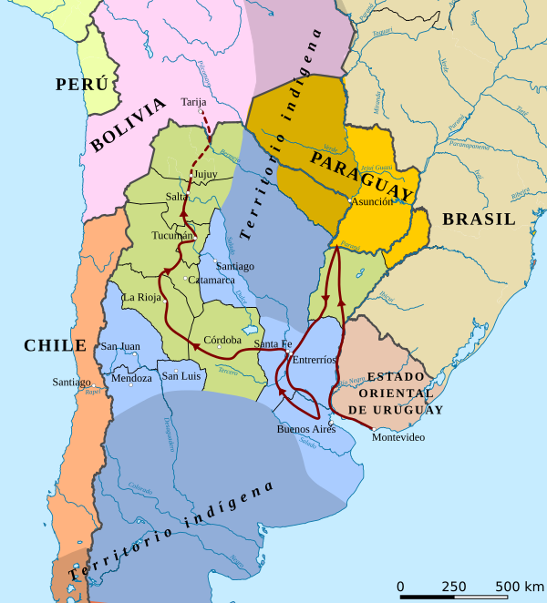 В 1808 году Испания была захвачена Францией, а в испанских колониях обозначились центробежные тенденции. В 1810 году в столице вице-королевства Рио-де-ла-Плата вспыхнула Майская революция, которая привела к созданию Соединённых провинций Рио-де-ла-Плата.