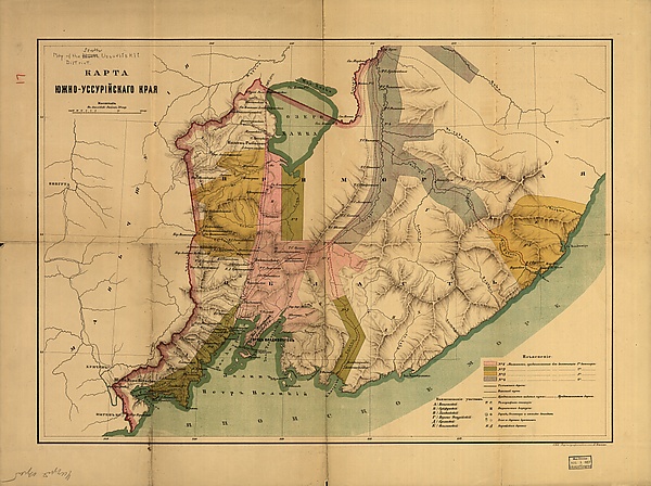 Территория Приморья была включена в состав Российского государства на основе Айгуньского (1858) и Пекинского (1860) договоров, юридически оформивших границы между Россией и Китаем[28]. В 1858 году в состав Приморской области вошло всё приобретенное по Айгуньскому договору пространство между Амуром и южной частью Охотского моря, пространство между правым берегом Амура, рекой Уссури и Японским морем было объявлено территорией без выявленного статуса. Центром управления областью сделан город Николаевск, куда был переведен из Петропавловска флот[22].
